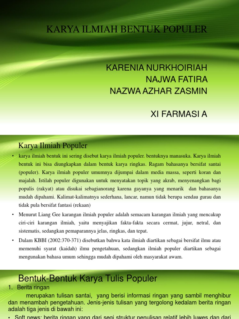 Jenis Karya Ilmiah Populer - Karangan Ilmiah Populer Ppt Download / Check spelling or type a new query.. Maybe you would like to learn more about one of these? Check spelling or type a new query. We did not find results for: